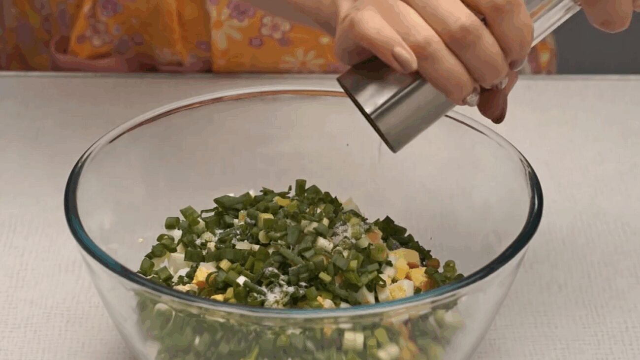 Далі візьміть пучок свіжої зеленої цибулі й дрібно її наріжте. Завдяки цьому вона відчуватиметься у кожній ложці салату, але не перебиватиме смак інших продуктів. Заправляти такий весняний олів’є краще не майонезом, а густим натуральним йогуртом. Тобто без цукру, фруктів та інших домішок. Знадобиться його 2 столові ложки.