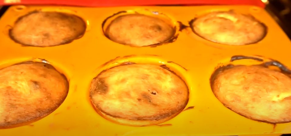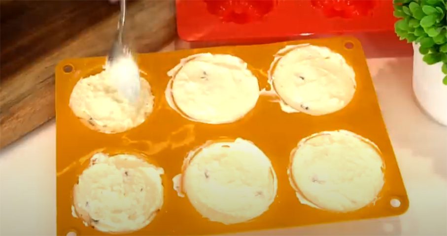 Формочки для кексів змастіть олією. Наповніть їх сирним тістом. Верх змастіть сметаною. Духовка на цей момент уже має бути розігрітою до 180 градусів. Закладайте у духову шафу і виставляйте час – 35 хвилин.