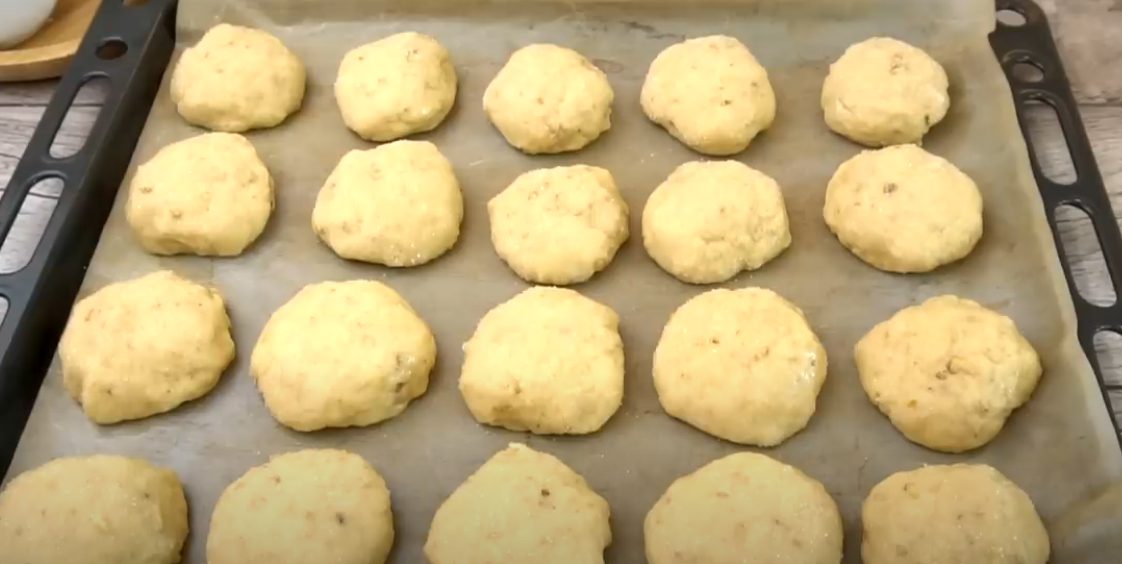 З одного боку легенько приплюскніть, а голівки обваляйте у цукрі. Орієнтовно має вийти 20 медових пряників. Перекладіть їх на деко, вистелене пергаментним папером. Поставте у духовку, яку розігрійте до 180 градусів.