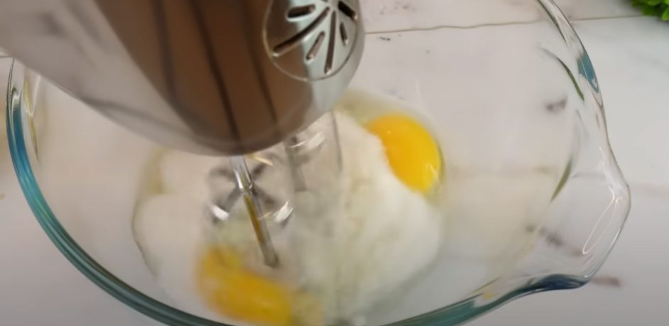 Сирний пиріг “Подушки” починайте готувати з шоколадної основи. Борошно просійте з какао та розпушувачем. В іншу мисочку вбийте яйця, додайте цукор та сіль. Збивайте міксером зо 3 хвилини.