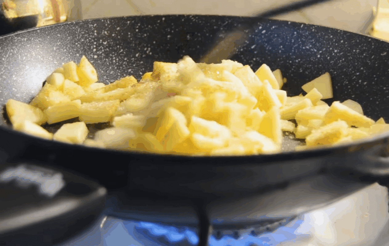 Яблука потрібно очистити від шкірки та серцевини і нарізати середнім кубиком.