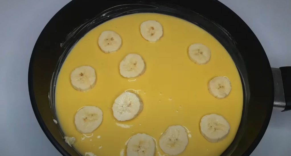 Акуратно поверніть його на пательню та знову поставте на вогонь. Знадобиться ще хвилин зо 5, щоб наше бананове диво дійшло до потрібної кондиції. Викладіть пиріг на блюдо, наріжте на порції та подавайте до столу.