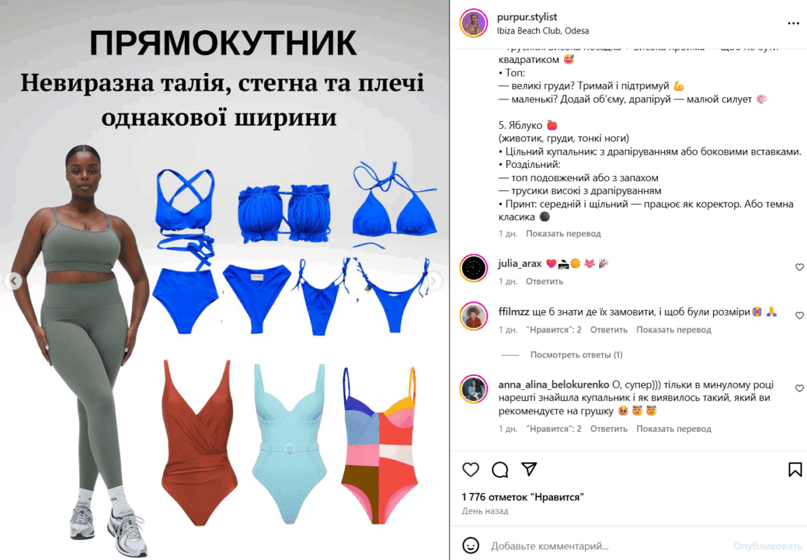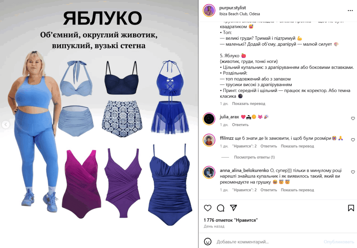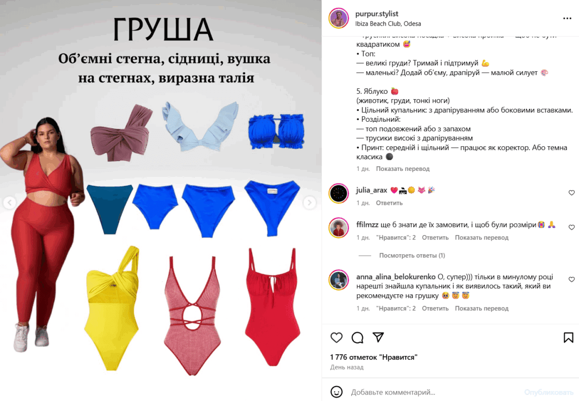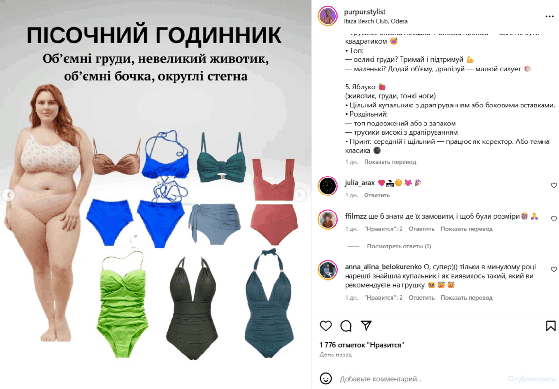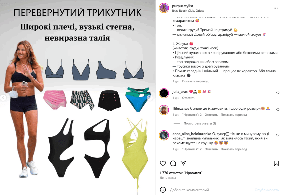 Вже за кілька днів почнеться літо, а значить настав час вибирати новий купальник. Для багатьох жінок це перетворюється на справжню проблему. Особливо, якщо у вас є деякі особливості фігури. Популярна в Інстаграмі молода стилістка зі Львова Олена Шевченко вирішила допомогти і розповіла на своїй сторінці, як правильно підібрати купальник на типом фігури.