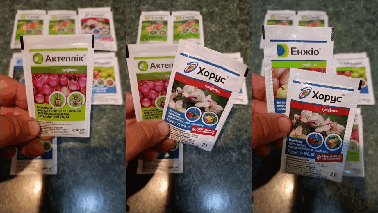 Тобто коли цвіт вже опав та почали формуватися зав’язі, починайте обробку. Але чим? Найкращим рішенням для цього є Актеллік. Так, не якісь народні рецепти, бо навіть якщо вони й спрацюють, то не так ефективно, як би того вам хотілося. Обприскувати дерева краще в суху та безвітряну погоду. Якщо буде дощ, тоді препарат змиється. А сильний вітер просто не дозволить нормально рівномірно обробляти дерева.
