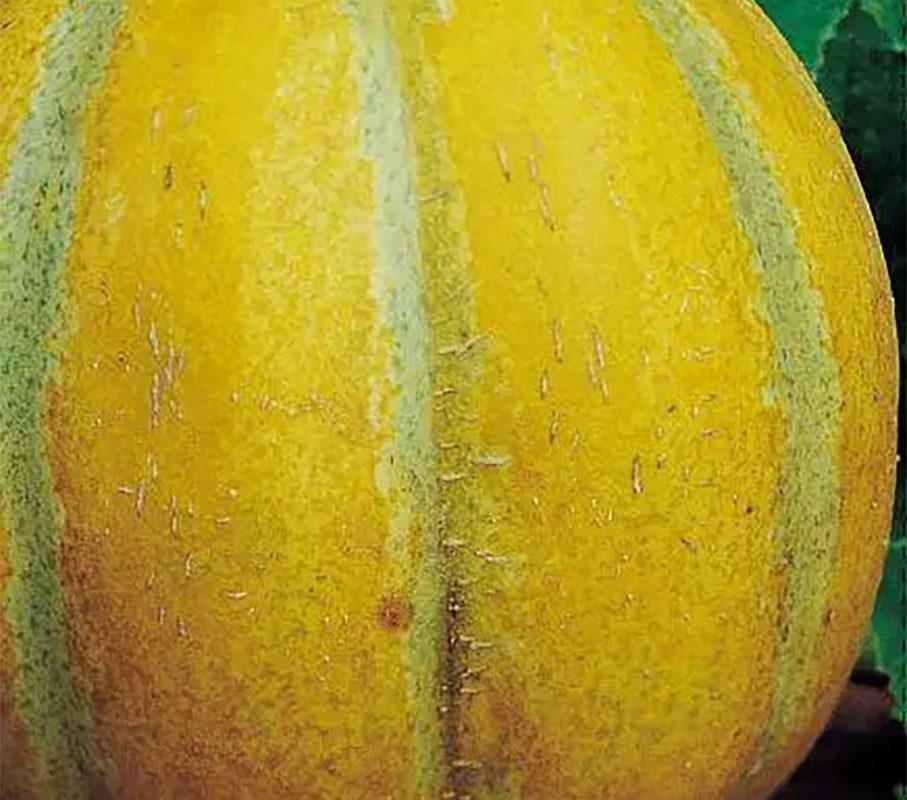 Ще один сорт дині, що дуже швидко достигає. Плоди мають довгувату форму і можуть вирости до 2-4 кг. Шкірочка яскраво-жовта, чудово видно сіточку на поверхні. Серединка біла й дуже солодка. Цей гібрид стійкий до грибкових захворювань, тож урожаю дочекаєтеся напевно.