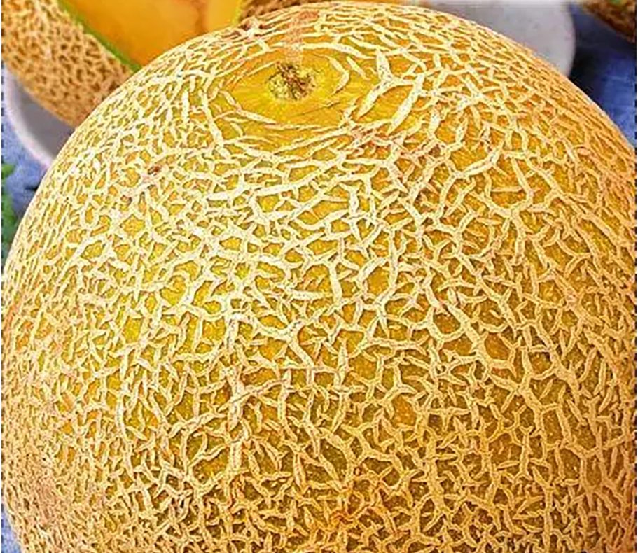 Ці жовті сітчасті плоди мають легку майже непомітну горбатість. Виростають дині цього сорту зазвичай до 2 кг. Можуть бути ягоди трішки більші чи трішки менші. У середині їстівна частина біла з легким відтінком зеленого. М’якота дуже солодка із приємним ароматом. Динний сік стікатиме по підборіддю та рукам. Перший урожай збиратимете вже за 76 днів.