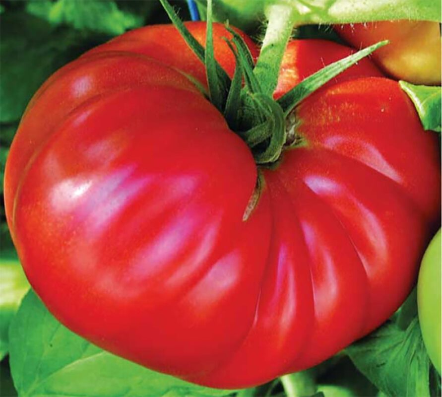 Округлі томати, трішки плескуваті. Виростають на кущі великими – можуть заважити від 400 г до 1,2 кг. Ці велетні не потребують щедрого поливу, практично не розтріскуються та рідко хворіють, тож є ймовірність, що не підчеплять під час зростання кореневу шийку.