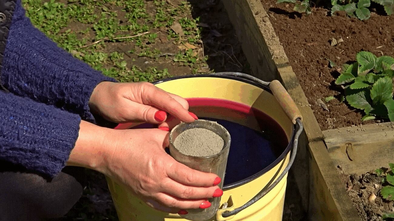 Щоб дати рослинам все, що їм потрібно, варто приготувати рідке добриво. Так можна швидше доставити поживні речовини до коренів. Для цього візьміть 10 л води, розчиніть в ній столову ложку сульфату калію, а також 4 ложки попередньо просіяної золи. Окремо розчиніть в склянці гарячої води чайну ложку борної кислоти та теж додайте у відро. Усе добре перемішайте та одразу застосовуйте, це добриво не повинно стояти, бо стане менш поживним.