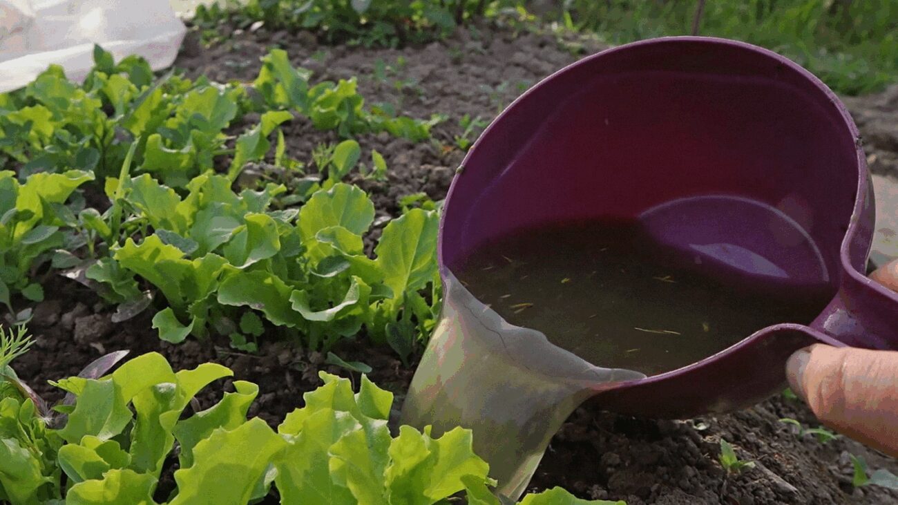 Настій кропиви — це ще один хороший варіант. Третину відра заповніть подрібненою кропивою, залите доверху водою та залиште на кілька днів настоятися. Потім процідіть, розведіть 1:1 та поливайте під корінь. Такий розчин діє м’якше, ніж деякі мінеральні добрива, але гарно підживлює рослини. Його можна використовувати не тільки для зелені, а також для томатів, перців і огірків. Та й інші рослини на городі теж можна полити (крім бобових).