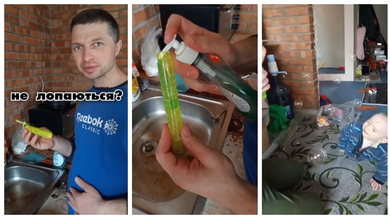 Один українець вигадав варіант того, як можна зробити ці бульбашки вдома. Більше того, він запевняє, що ці бульбашки не будуть лопатися. За його словами, потрібно взяти цукор, засіб для миття посуду та гарячу воду. Для того, щоб наповнити рідиною стандартні мильні бульбашки, потрібно покласти дві десертні ложки цукру, гарячу воду. Все це добре стряхнути, щоб цукор дуже добре розчинився. Після, у пляшку можна додати 30% засобу для миття посуду. Ще раз дуже добре слід стряхнути! І все, домашні бульбашки, що можна наповнювати в пляшечку нескінченно, готові!