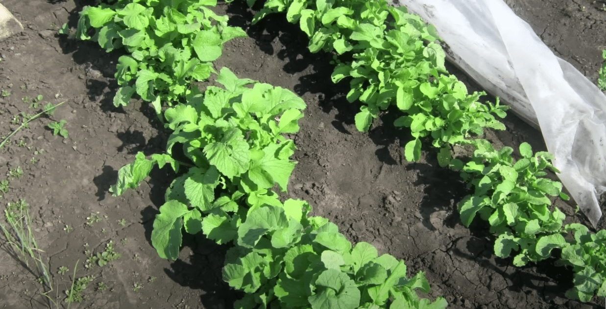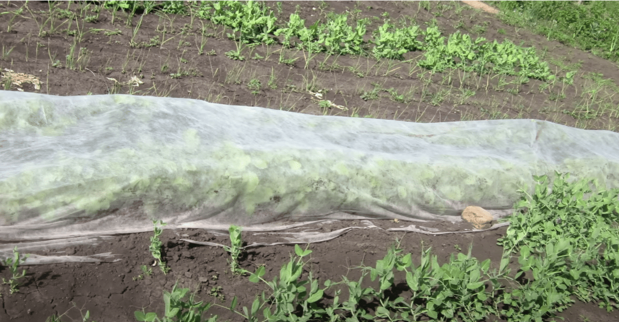 Просто візьміть найтонший спанбонд і відразу після посадки накрийте їм грядку. Тут навіть не обов’язково ставити дуги, найголовніше не натягувати його жорстко, щоб рослини, коли сходити, могли його підняти. Подивіться на фото, як накрита грядка з редискою.