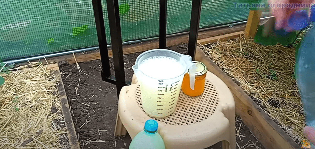 У 10-літрову лійку потрібно взяти 1 л молочної сироватки та 1 повну ст. ложку меду. Після розчинення просто полийте огірки.
