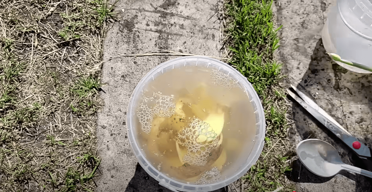 Для приготування вам знадобиться 1 л шкаралупи, які заливаються теплою водою, а потім настоюються протягом 24 годин. Після цього розчиняєте в 10 л води і поливаєте по літровій банці під кожен кущ.