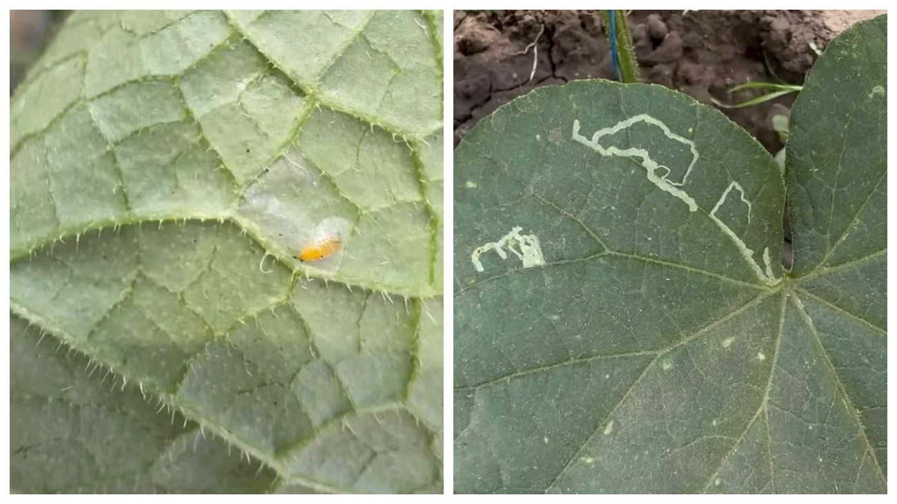 Тому, коли на листочках овочів з’являються світлі та звивисті лінії, які нагадують гарні візерунки, це вже перша ознака того, що там з’явився мінер. Коли листя огірків починає жовтіти, в’янути, то це вже говорить про те, що цей шкідник оселився там досить давно. А також, що процес фотосинтезу цієї рослини вже був порушений. Ще на листках можна помітити дрібні личинки. Як правило, вони бувають жовтуватого або білого кольорів.
