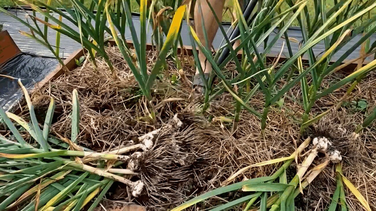 - Другою ознакою остаточного дозрівання часнику є масове пожовтіння та всихання листя.