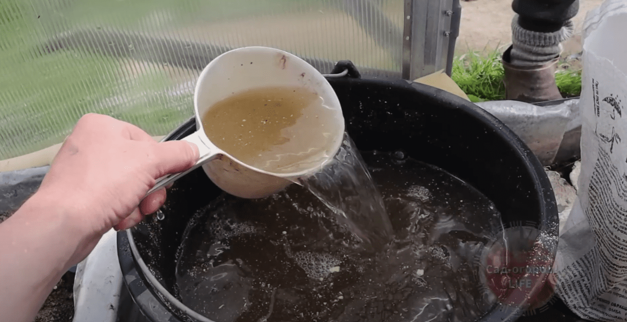 У 10 літрове відро з водою потрібно додати 3-4 столові ложки мелених шкурок і залишити бродити настій на тиждень. Коли добриво дозріє, перемішати та поливати під корінь по 1 літру кожні 10 днів.