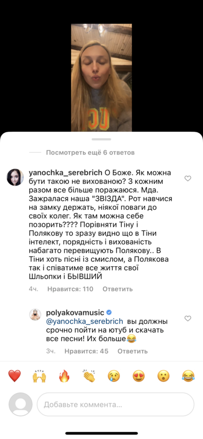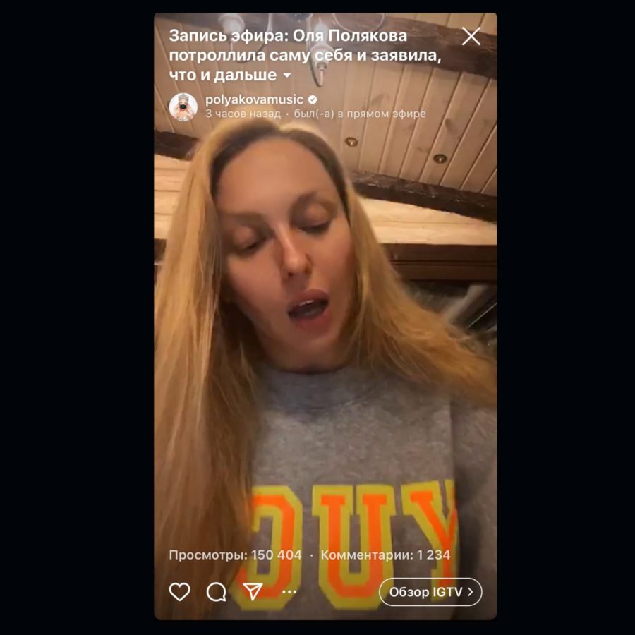 Оля Полякова довго терпіла хейт у свою сторону через скандальні вислови у сторону Тіни Кароль та співачки Камалыъ. І нарешті вирішила пояснити, чому пустилася берега та проявляє зневагу до творчості своїх колег. Для цього вона запросила користувачів у прямий  ефір і саме в ньому пояснила свою поведінку.