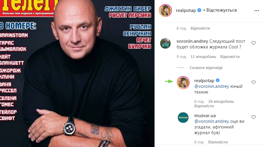 “Наступний пост буде обкладинка журналу Cool?”, – написали Потапу
