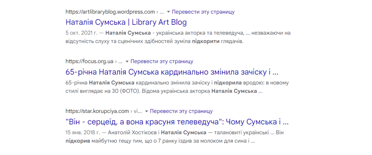 Ім’я Сумської-старшої завжди підкреслюється епітетами “талановита”, “красуня”. Не вщухає інтерес до змін у зовнішності знаменитості. Так, як зірка має сталий образ, складений роками, який дозволяє їй перевтілюватися на театральній сцені, дуже цікаво дізнатися, чи наважиться на зміни Наталія. Втім, з ними вона не поспішає.