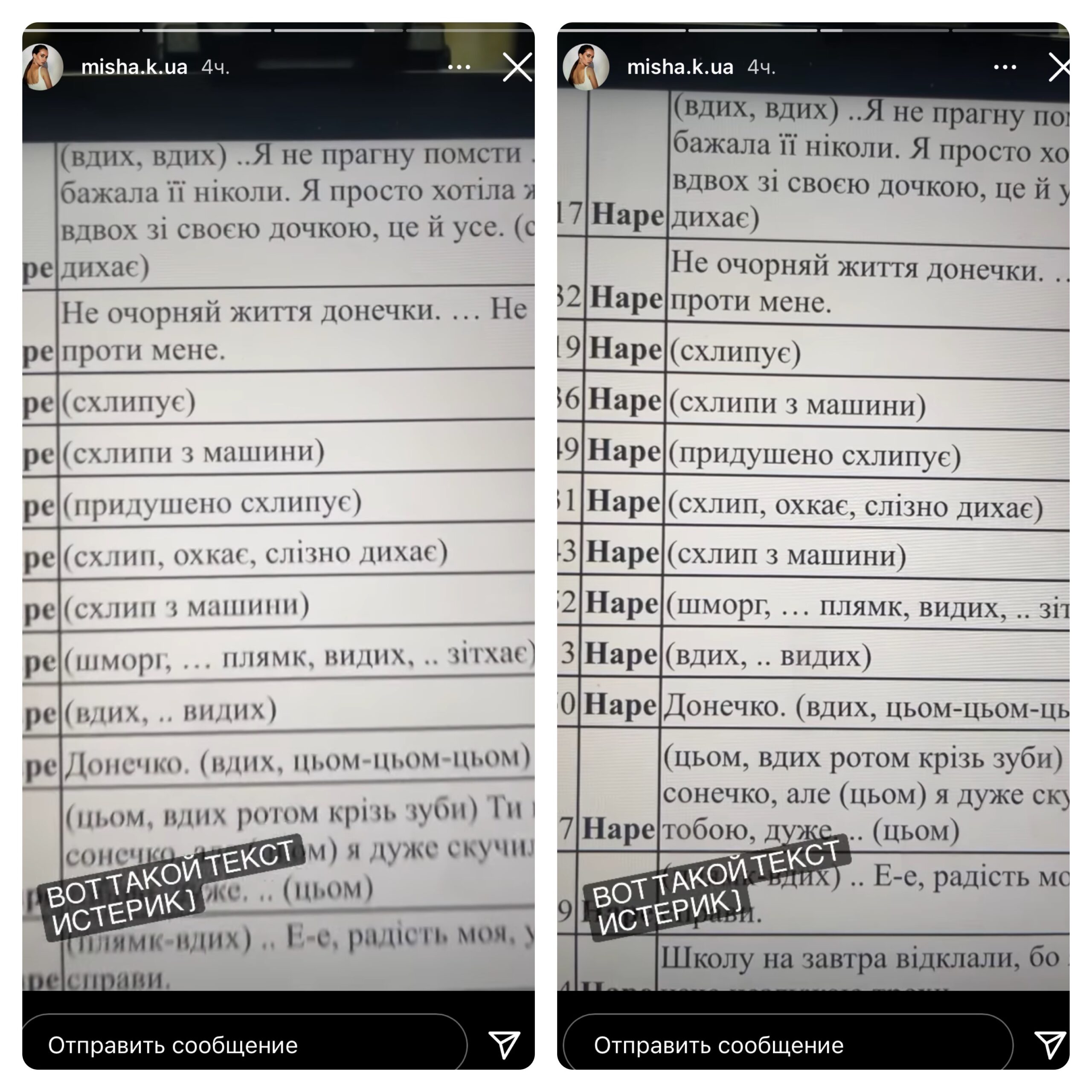 Зірка показала користувачам мережі, як виглядає сценарій, за яким вона озвучує Наре. І хоча в неї це викликало лише сміх, дуже скоро ми зможемо почути, щиру гру Ксенії, а також її істерики, сльози та зітхання.