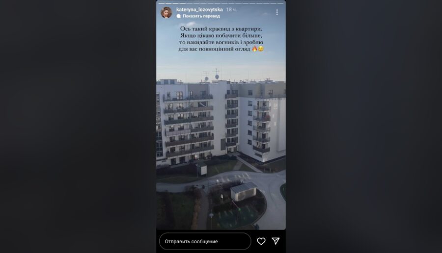 Також ексклюзивно для своїх підписників, показала краєвид зі свого вікна з квартири. Бачимо сучасний будинок, прекрасну територію навколо. Нічого зайвого, все зі смаком.