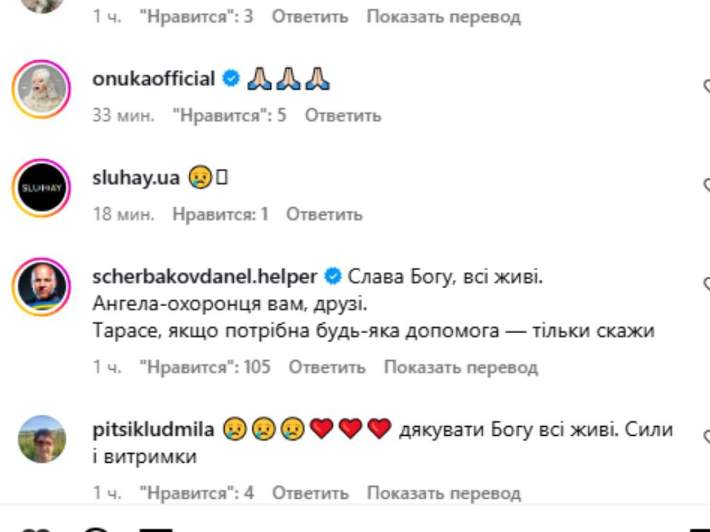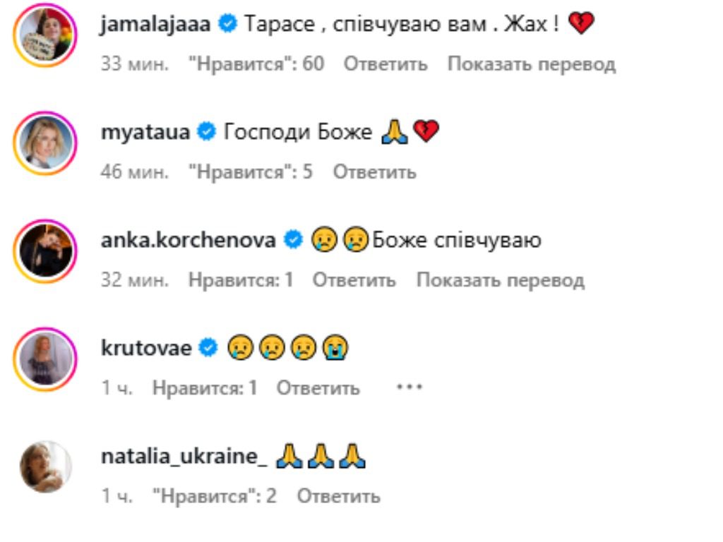 В коментарях під цією публікацією чимало користувачів висловили свої співчуття співаку та його родині. Зокрема, відзначилась там і Джамала, яка написала: