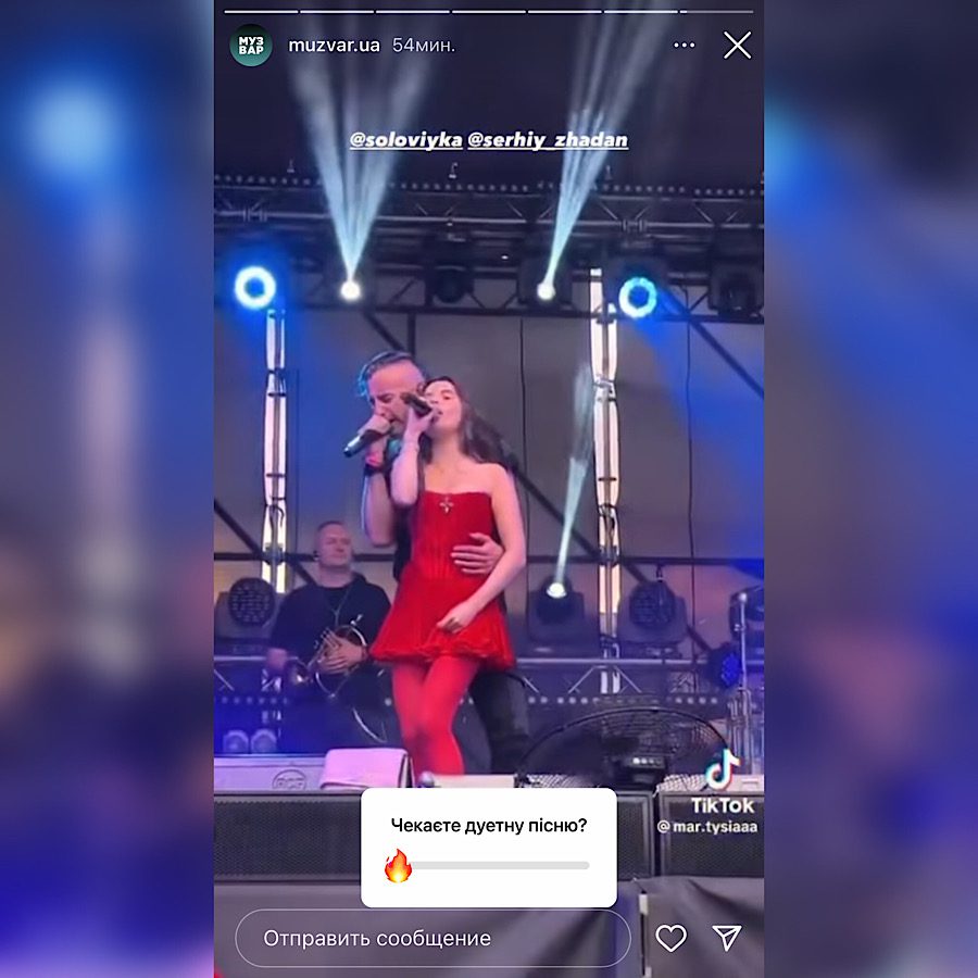 А от коли вони разом вийшли на сцену аби заспівати дуетну пісню, то вже там не змогли стримати своїх почуттів одне до одного. Сергій почав дуже сміливо обіймати Соловій просто на сцені. І до речі це вже повторювалося неодноразово. І саме так обійми та близький контакт між ними знову провокує думки про серйозність їхніх стосунків, адже Жадан розлучається з дружиною, і це вже факт.