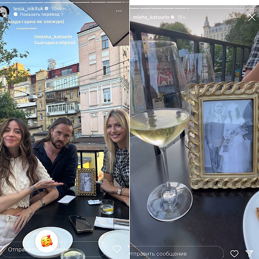 В подяку через такі привітання вони вирішили разом зустрітися та відсвяткувати цю неймовірну подію. Леся принесла своє творіння мистецтва і віддала його зірковій парі молодят. Для зустрічі вони обрали літню терасу київського закладу. І було видно, що зірки раді цій зустрічі, оскільки вони й так давно не бачились. А зустріч з Нікітюк, це завжди весело.