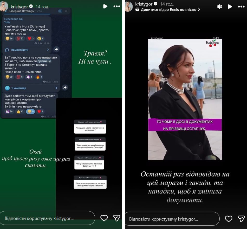 Зараз Христина часто отримує зауваження на рахунок прізвище чоловіка, яке вона носить, не тільки від своїх підписників, але, як виявилося, і від нинішньої дружини телеведучого.