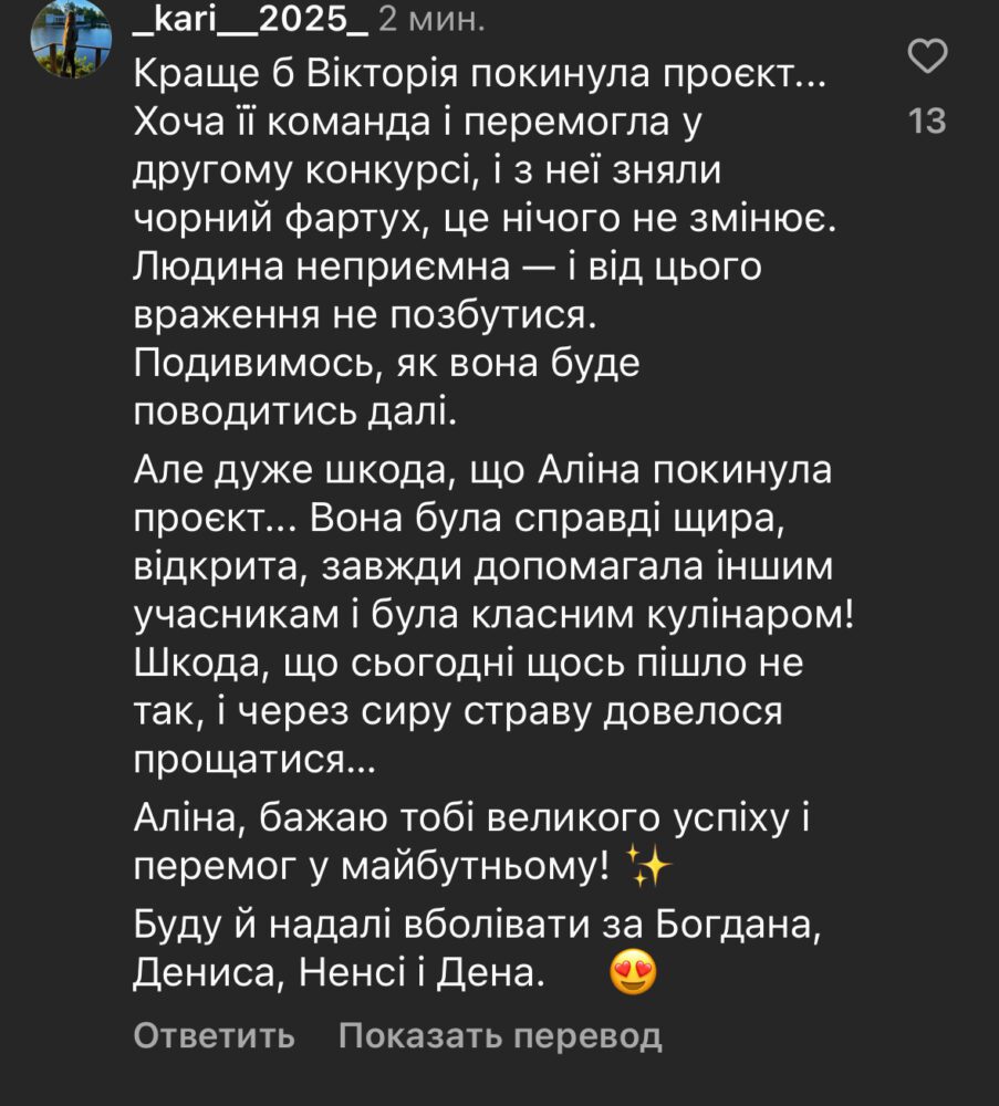На офіційній сторінці проекту користувачі поділилися своїми думками на рахунок того, хто вилетів цей раз, і рішення виявилося суперечливим.