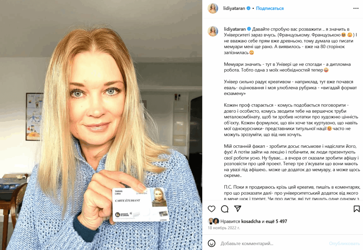 Зазначимо, що після переїзду до Франції знаменитість значно скоротила особисті публікації в соціальних мережах і виходила на зв’язок лише з важливих приводів. Наприклад, у свій День народження чи День народження дочки Василини. Також Лідія могла з’являтись у період своїх рідкісних приїздів до України. Нагадаємо, що вперше після початку війни Таран з’явилася в Києві наприкінці липня 2022 року, коли приїжджала подивитися на свою квартиру, яка потрапила під обстріл. Тоді вона зустрілася зі своєю подругою та колегою Марічкою Падалко.