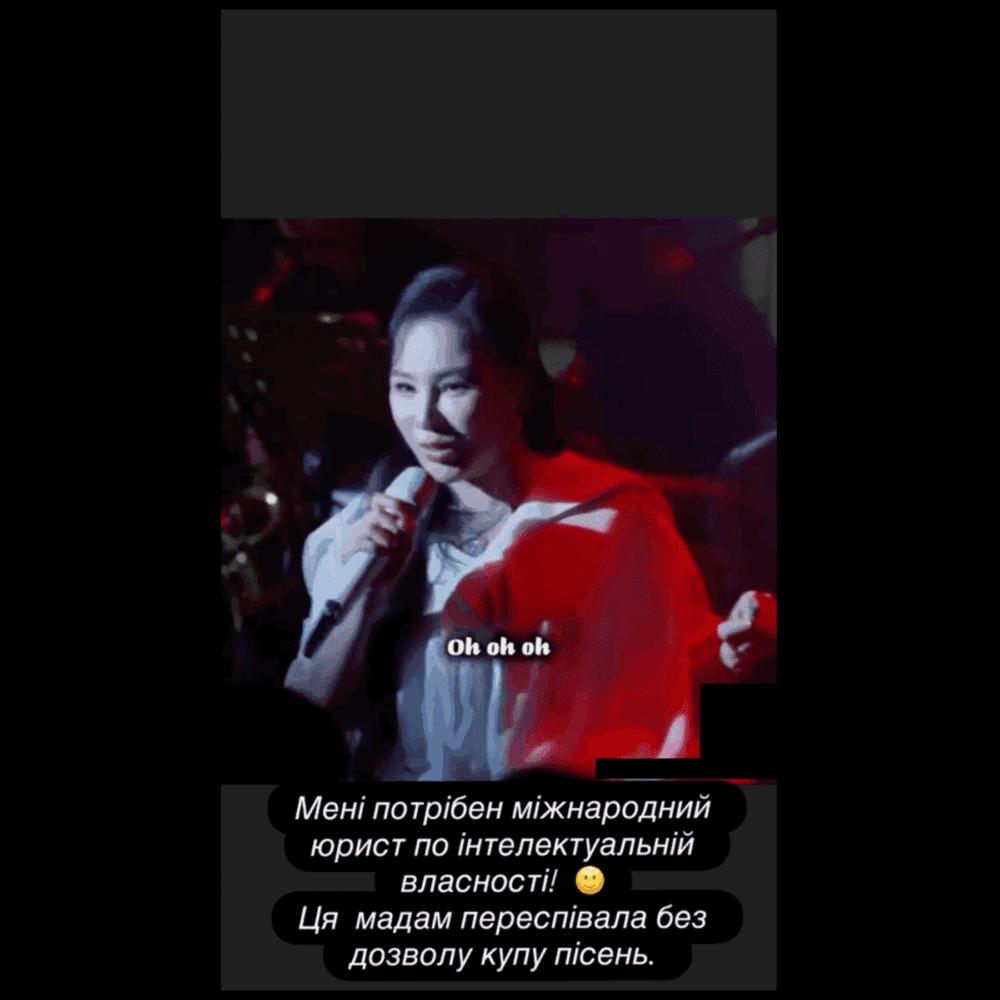 “Мені потрібний міжнародний юрист з інтелектуальної власності! Ця дама переспіла без дозволу купу пісень”, – написала зірка у сторіс.