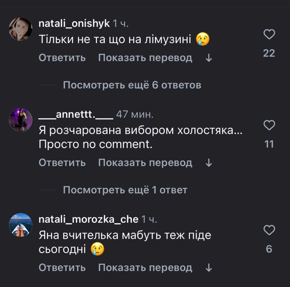 Розкрито імена учасниць Холостяк-14 після другого випуску шоу. Скріншот коментарів під публікацією на офіційній сторінці проєкту