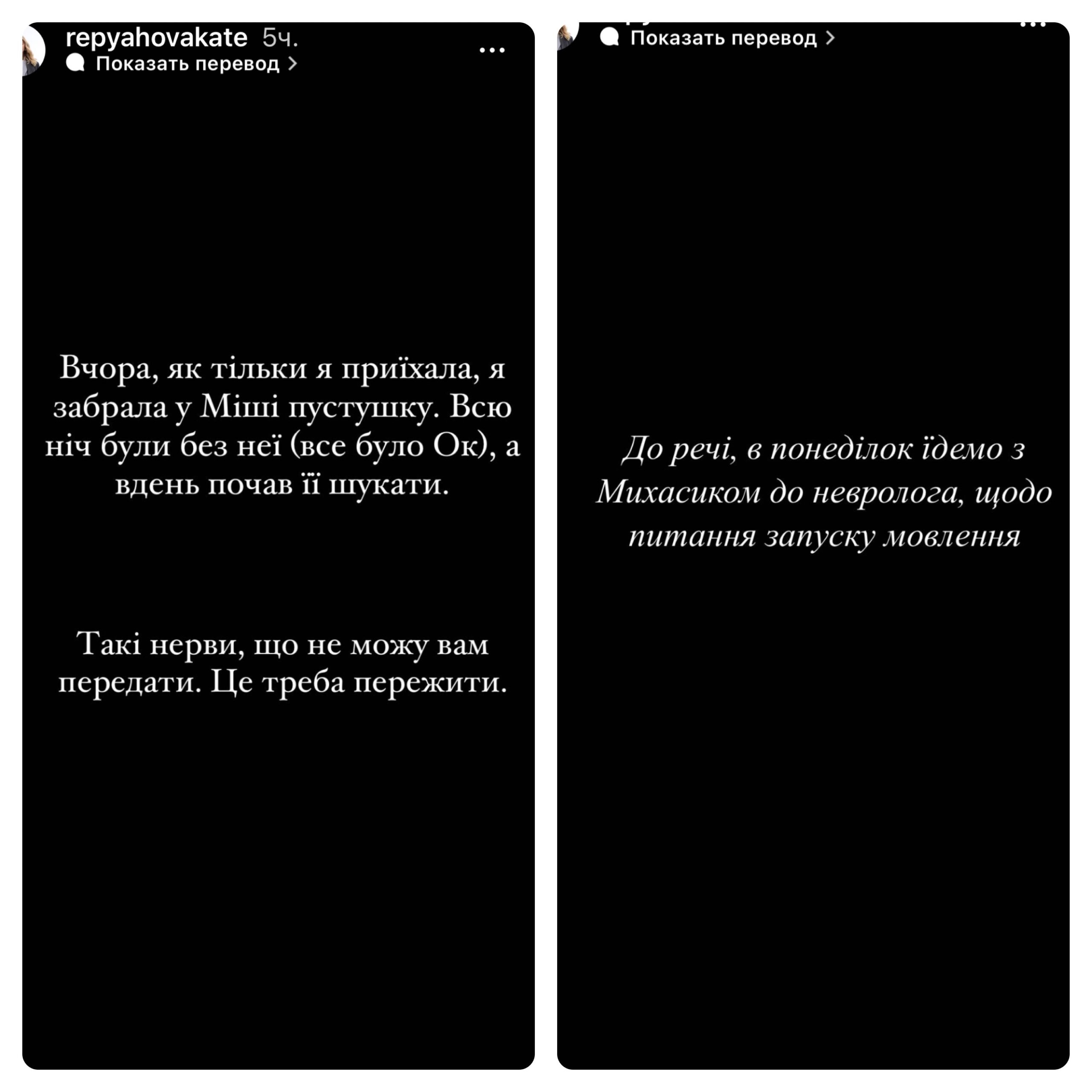 А днями Катерина таки повідомила на особистій сторінці в соціальній мережі Instagram, що збирається разом з сином з візитом до невролога. Мета цього візиту зрозуміла — запуск мовлення.